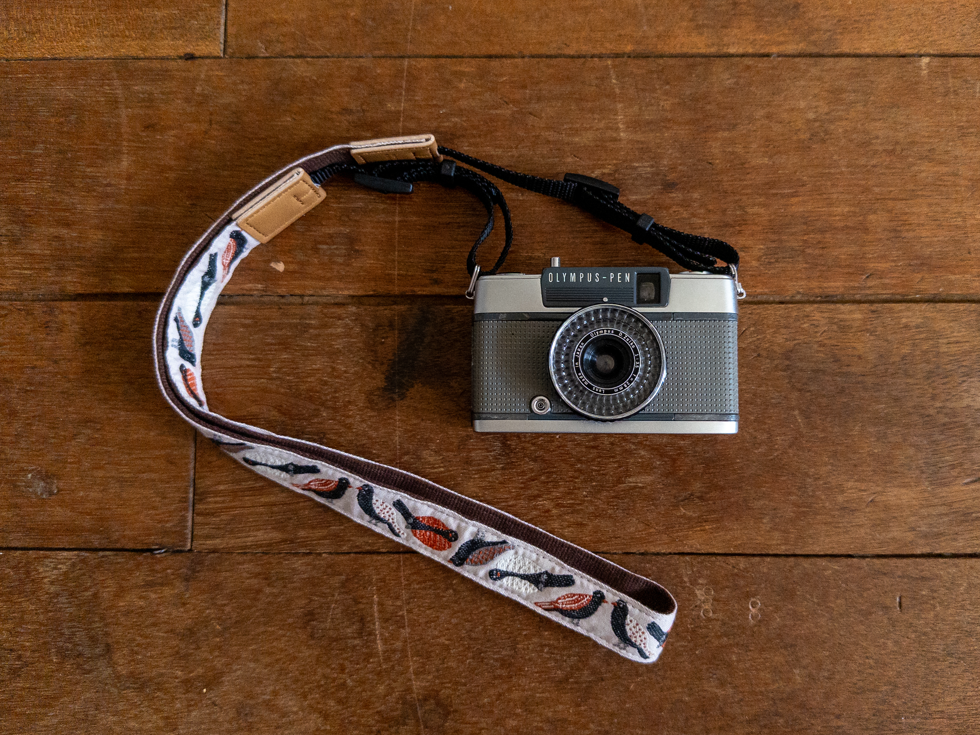 カメラを買ったときの純正品のカメラストラップもかっこいいですが、レピヤンリボンオリジナルのオリボンカメラストラップに付け替えると、雰囲気がぐっと優しくなります。