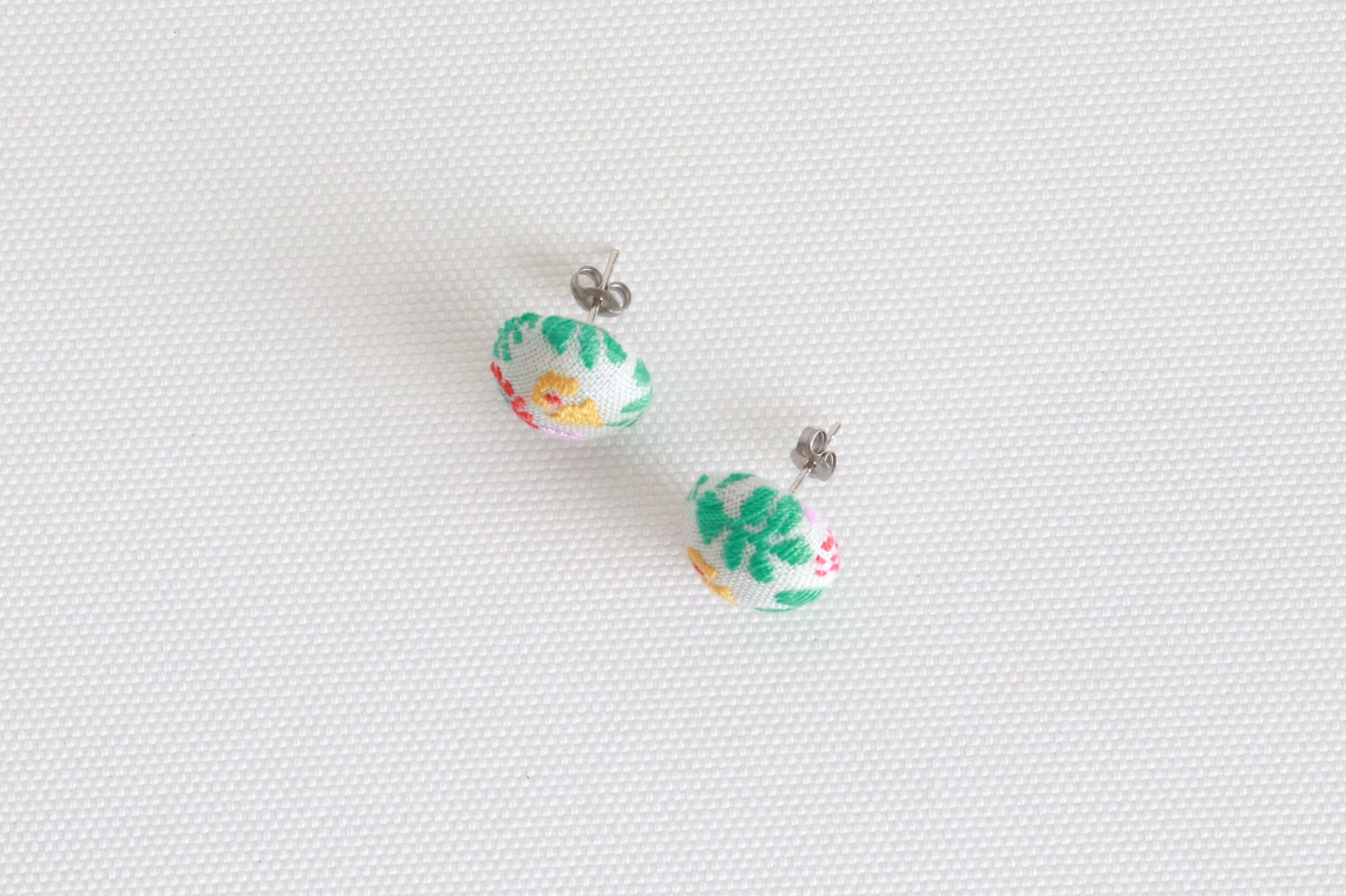 レピヤンリボンのチロルボタンをハーフトップのクルミボタンタイプの耳飾りに変身していただきました。